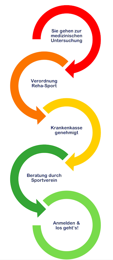 Wenden Sie sich an Ihren Arzt. Dort erhalten Sie eine Verordnung für den Rehabilitationssport (Muster 56). Nach Bewilligung der Verordnung durch Ihre Krankenkasse ist die Teilnahme an unserem Reha-Sportangebot für Sie kostenfrei. Eine Mitgliedschaft in dem jeweils anbietenden Sportverein ist für die Dauer der Verordnung nicht verpflichtend, gleichwohl auf freiwilliger Basis möglich und im Sinne des Rehabilitationserfolges auch wünschenswert.