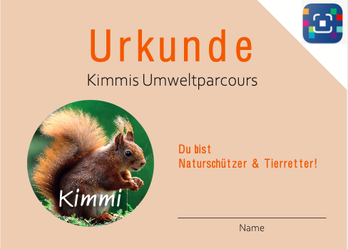 Kimmi ist ein Eichhörnchen aus dem Kreis Viersen und begleitet die Kinder virtuell durch den Parcours. Mit Spielen, Informationen und viel Bewegung werden die Kinder für den achtsamen Umgang mit der Natur sensibilisiert. Am Ende des Parcours erwartet die Kinder eine Urkunde zum Downloaden für ihr tolles Engagement. Lasst uns gemeinsam der Natur und den Tieren etwas Gutes tun und zusammen Müll sammeln!